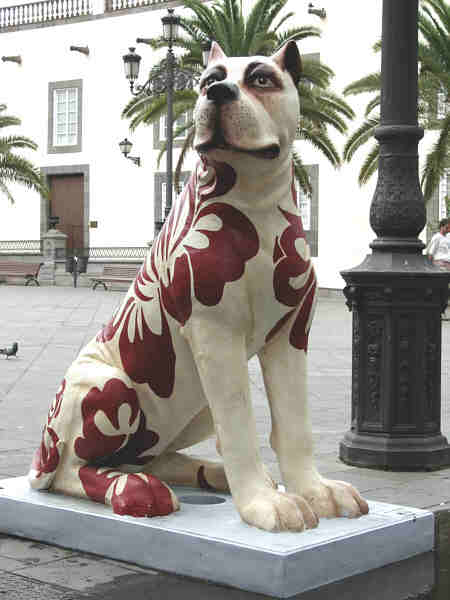 Überall begegnen wir bemalten Hundeplastiken.