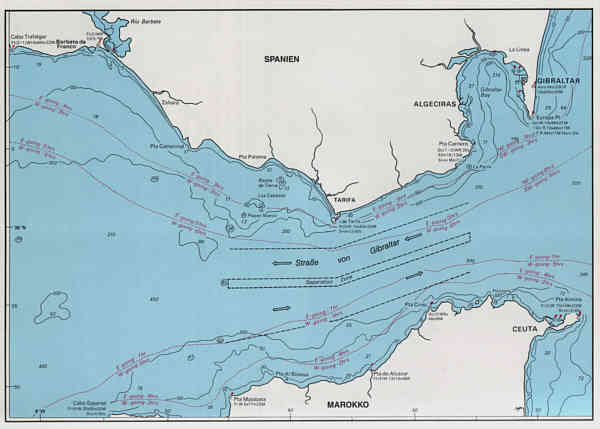 Die Schiffsbewegungen hielten sich in Grenzen (lange Dünung), der Gegenstrom mit 0,5 - 1,0 Knoten ebenfalls. Bis zu 80 sm westl. vom Affenfelsen konnten wir mit Hilfe des GPS noch Strom festzustellen.