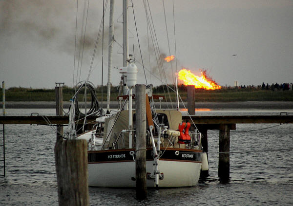 Zusammen mit den Crews der "Jöke", "Biene", "Wellengleiter" und "Niddasche" feierten wir dann abends im Hafen von
